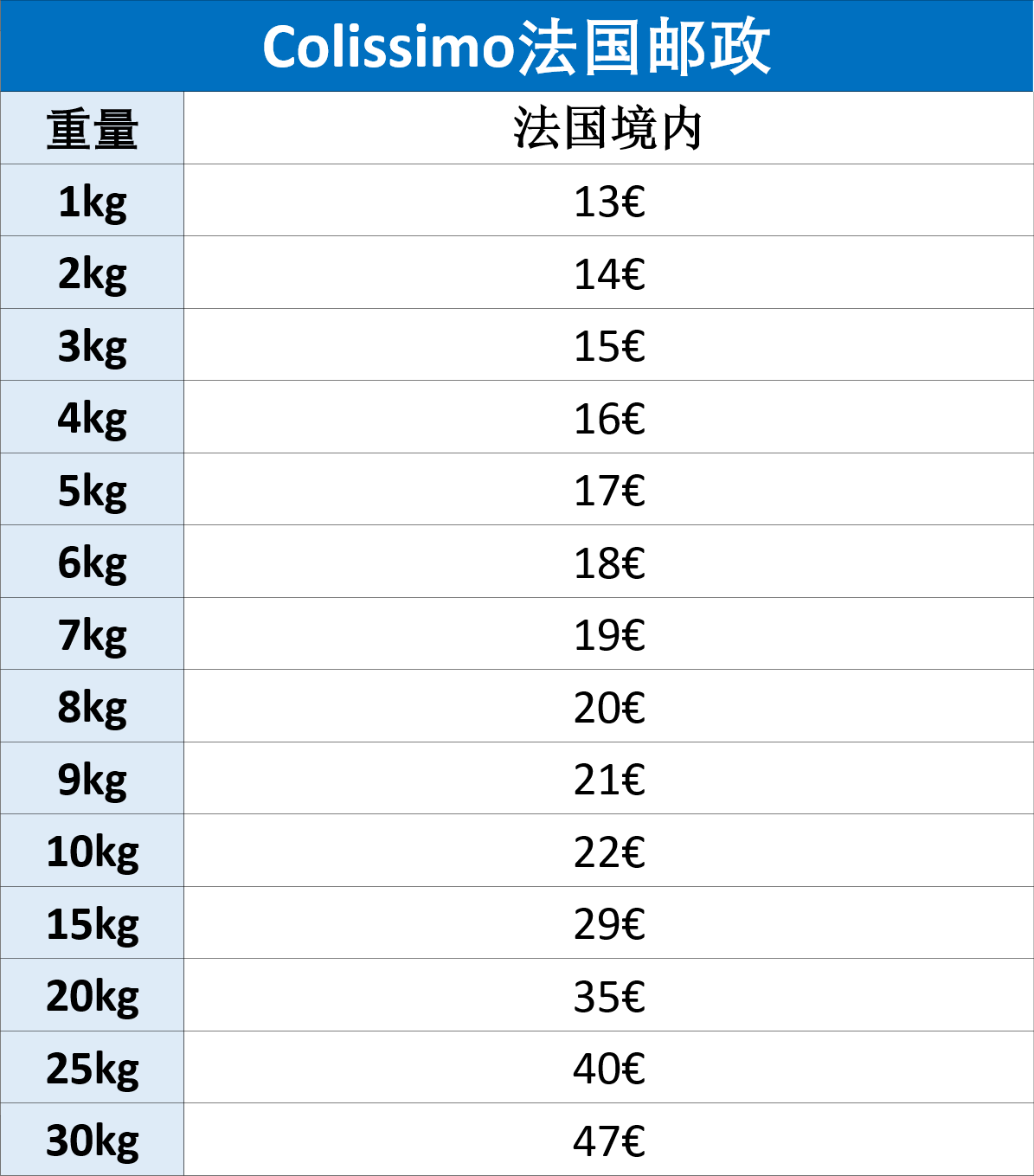 服务简介:法国邮政Colissimo运送快捷,服务有保障。包裹重量限制不超过30kg