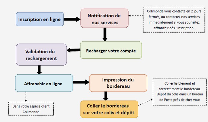 Il vous suffit de charger au minimum 100€ (garantie de surpoids) sur votre compte afin de bénéficier de nos nombreux tarifs avantageux et affranchir immédiatement en ligne !