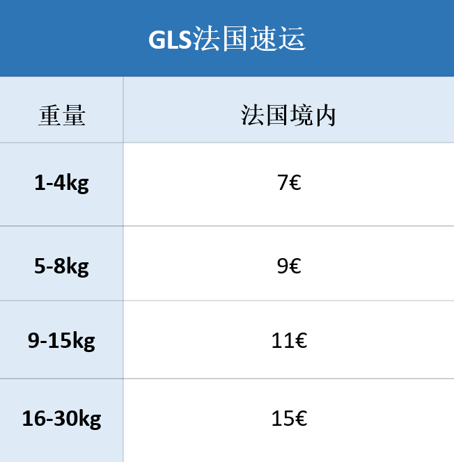时效:法国境内24至48小时到达,支持包裹全程实时追踪