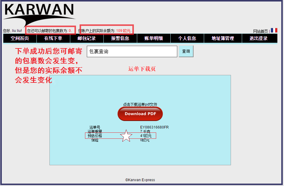 1.星号处的41欧并不是您的真实收费,只是系统预设价格,只与您可邮寄的包裹数相关