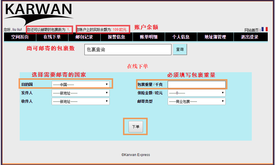 3.数量*单品重量 累计相加(如果您填写多行商品的话)不能超过您在开始下单时填写的总重量